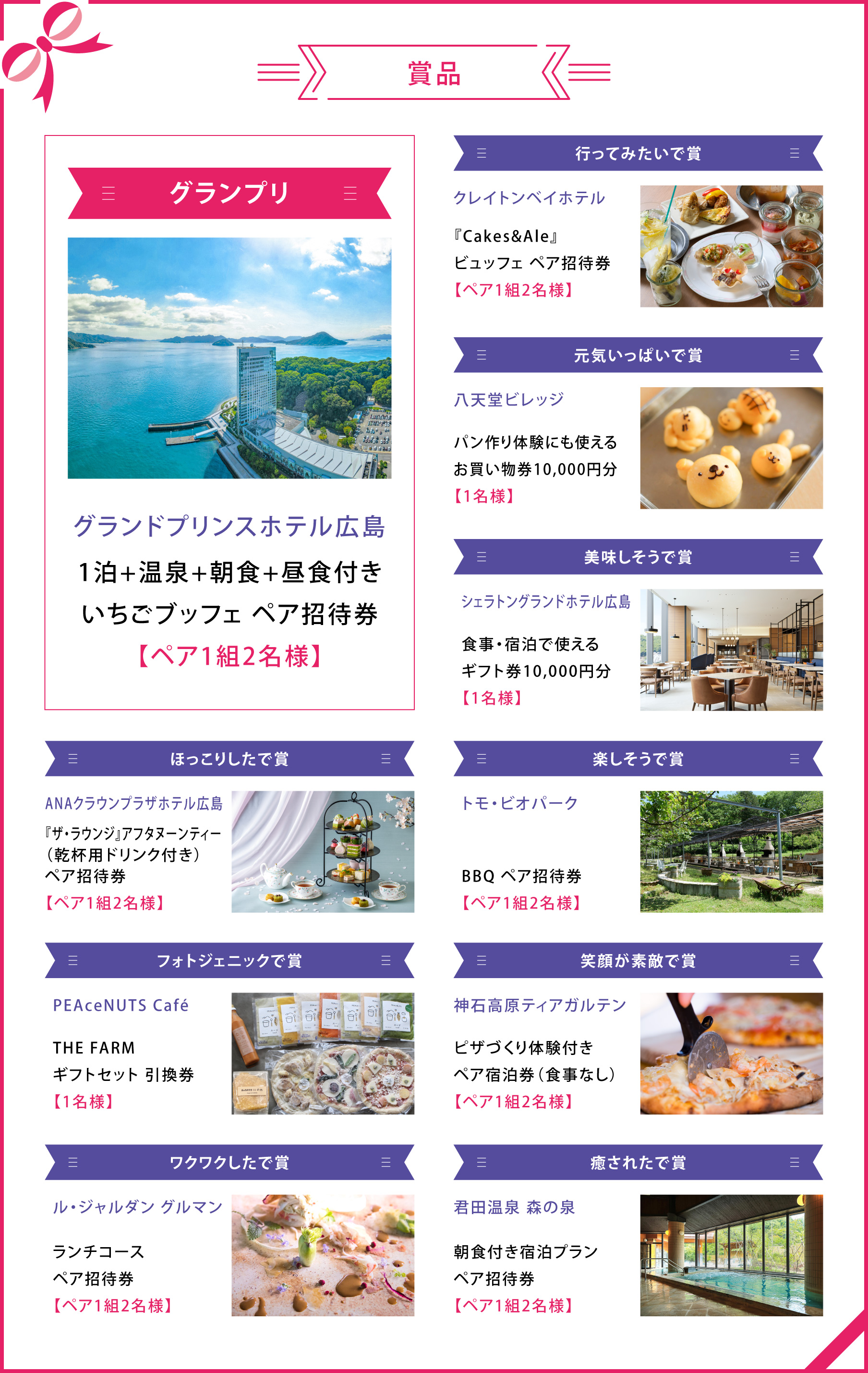 ※最寄りのネッツトヨタ広島の店舗にて、賞品をお受け取りいただきます。