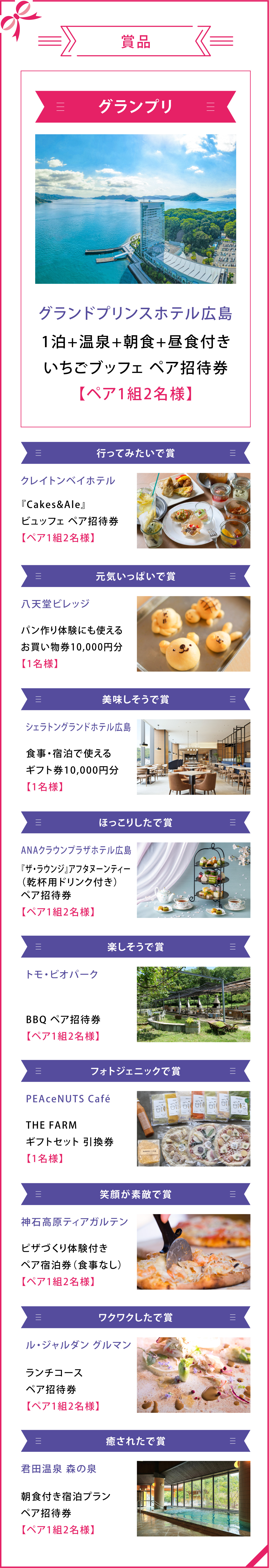 - 賞品の発送は日本国内のみとなりますのでご了承ください。